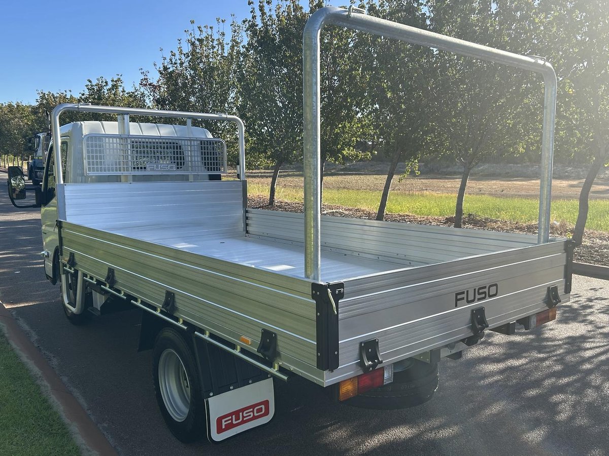 Ready for immediate delivery! This brand new 2025 Fuso Canter 515 City Cab with factory Safety Pack is the ideal solution for city-based trades and deliveries. Fitted with a 3.5m alloy tray with dropsides and rear H rack, it’s built tough, reliable, and ready to get to work from day one.