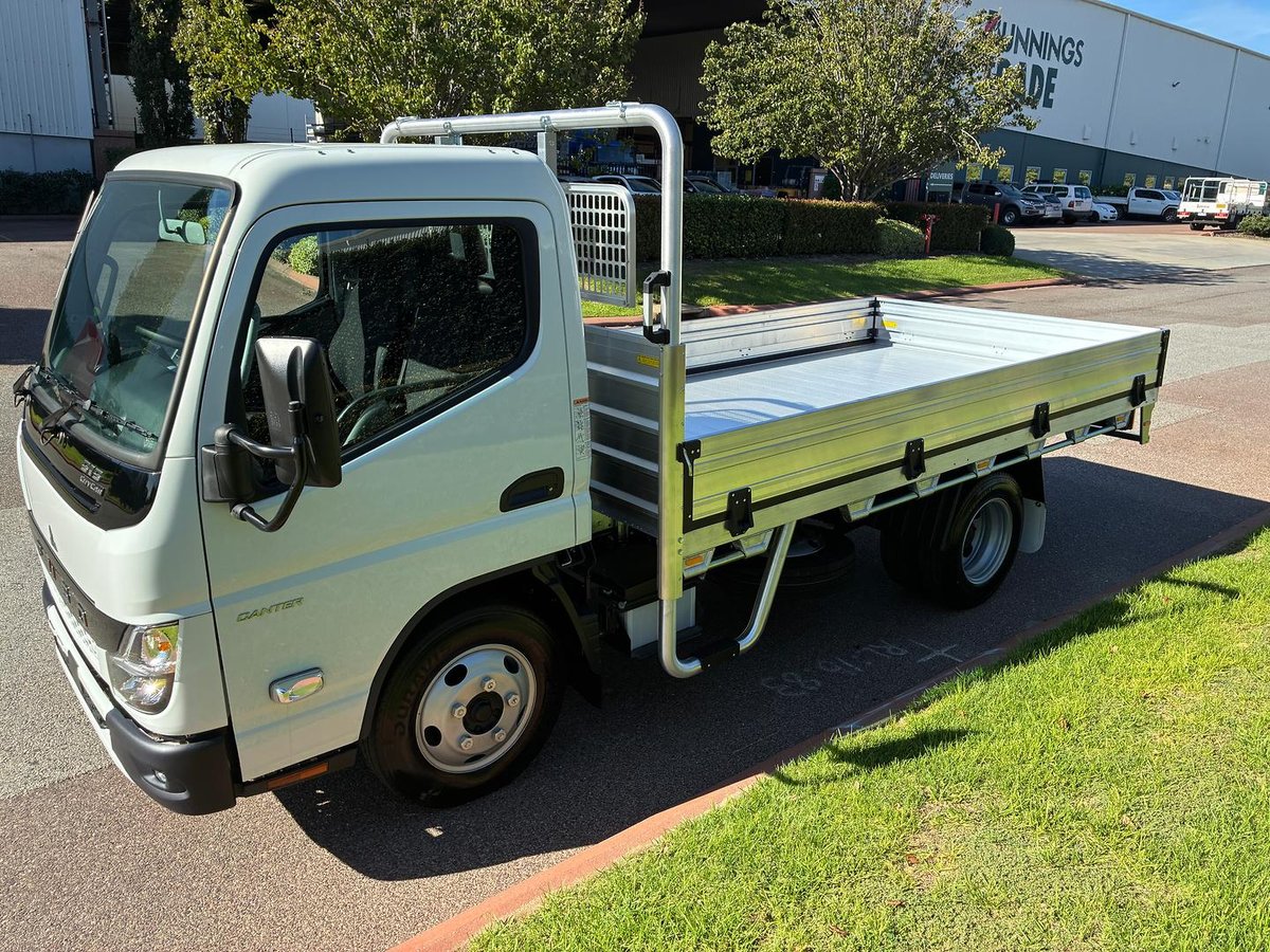 Ready for immediate delivery! This brand new 2026 Fuso Canter 515 City Cab with factory Safety Pack is the ideal solution for city-based trades and deliveries. Fitted with a 3.5m alloy tray with dropsides, it’s built tough, reliable, and ready to get to work from day one.